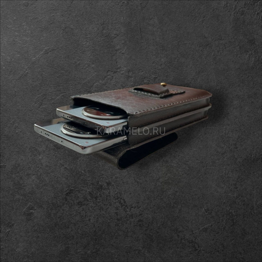 Стильный кожаный чехол на ремень на 2 телефона ручной работы из натуральной кожи. Впечатляет визуально, приятен тактильно, а также надёжен и долговечен. Каждое изделие создается на заказ с учетом пожеланий его будущего владельца с возможностью выбора цвета и т. д.