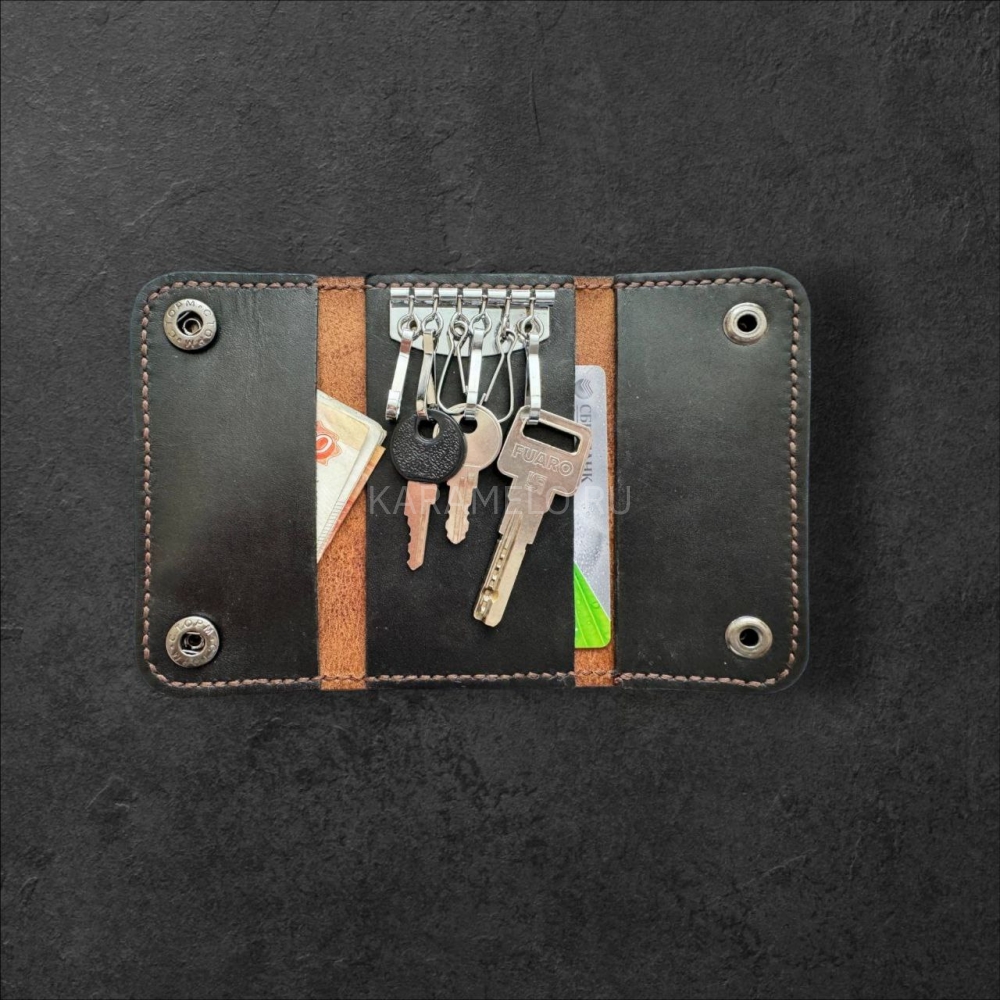 Стильная ключница ручной работы из натуральной кожи. 6 карабинов для ключей + 1 внутренняя секция для карты с бесконтактной оплатой или место для хранения купюр. Впечатляет визуально, приятна тактильно, а также надёжна и долговечна. Каждое изделие создается на заказ с учетом пожеланий его будущего владельца с возможностью выбора цвета и т. д. Поэтому связывайте со мной любым удобным способом и станьте владельцем крутого, полезного и уникального аксессуара... Доставка почтой или службой «СДЭК» в любую точку РФ. Стоимость изделия 1300 руб.