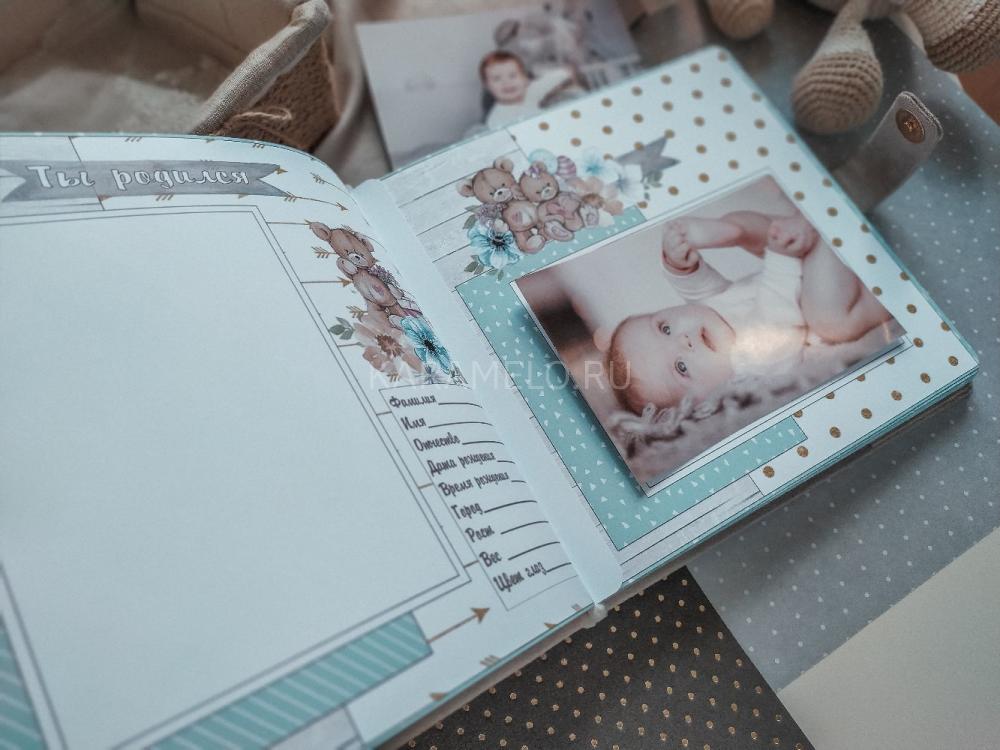 «Мой первый год». В альбоме 80 страничек. Составсстраниц: -титул; — в ожидании; — у мамы в животике; — ты родился; — по месяцам до года; — странички про маму и папу; — день рождения; — новый год; -ты растёшь; — первые успехи; -словарик; — зубки; — странички для отпечатков ручки и ножки; — бирка и локон; — фото. Цвет замши, персонаж на обложку, странички на Ваш выбор. Надпись можно сделать любую. Выполнен с любовью на заказ.