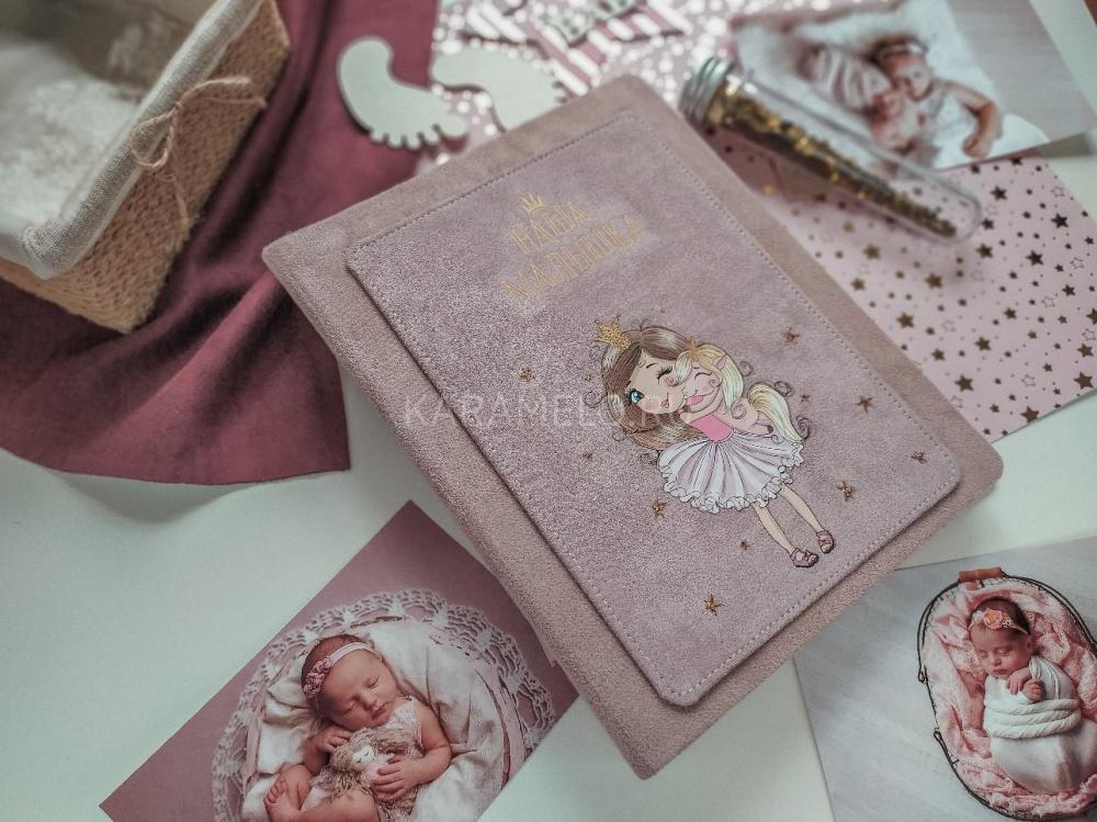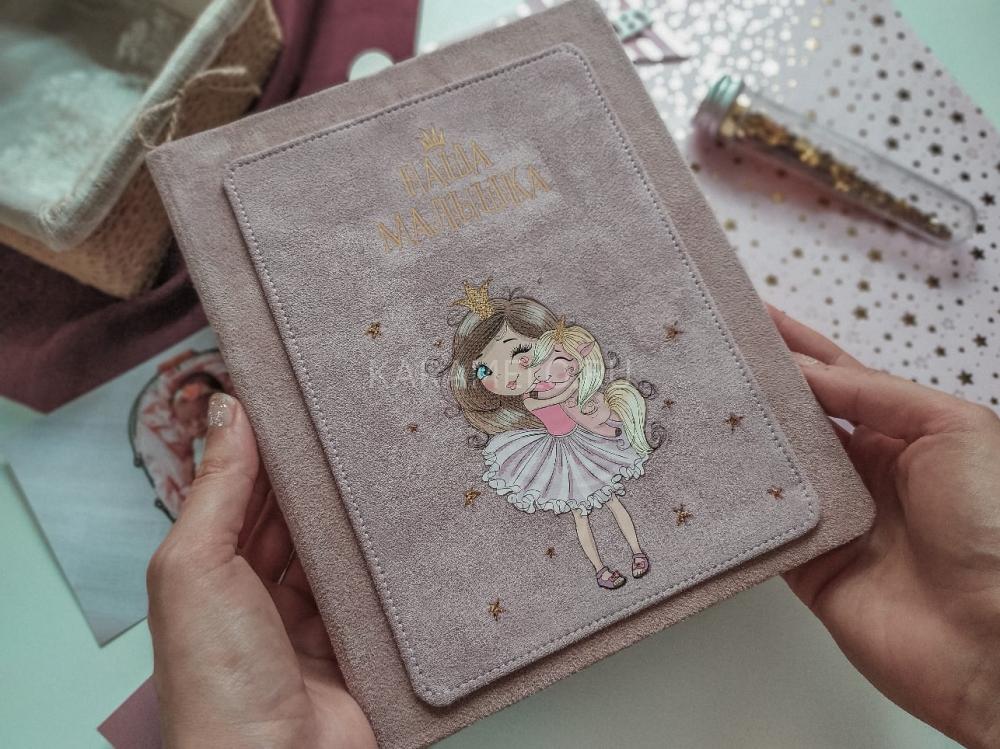 Детский альбом на 200 фотографий с файлами-кармашками для принцессы. Цвет замши, картинку можно выбрать. Надпись на альбоме можно сделать любую.