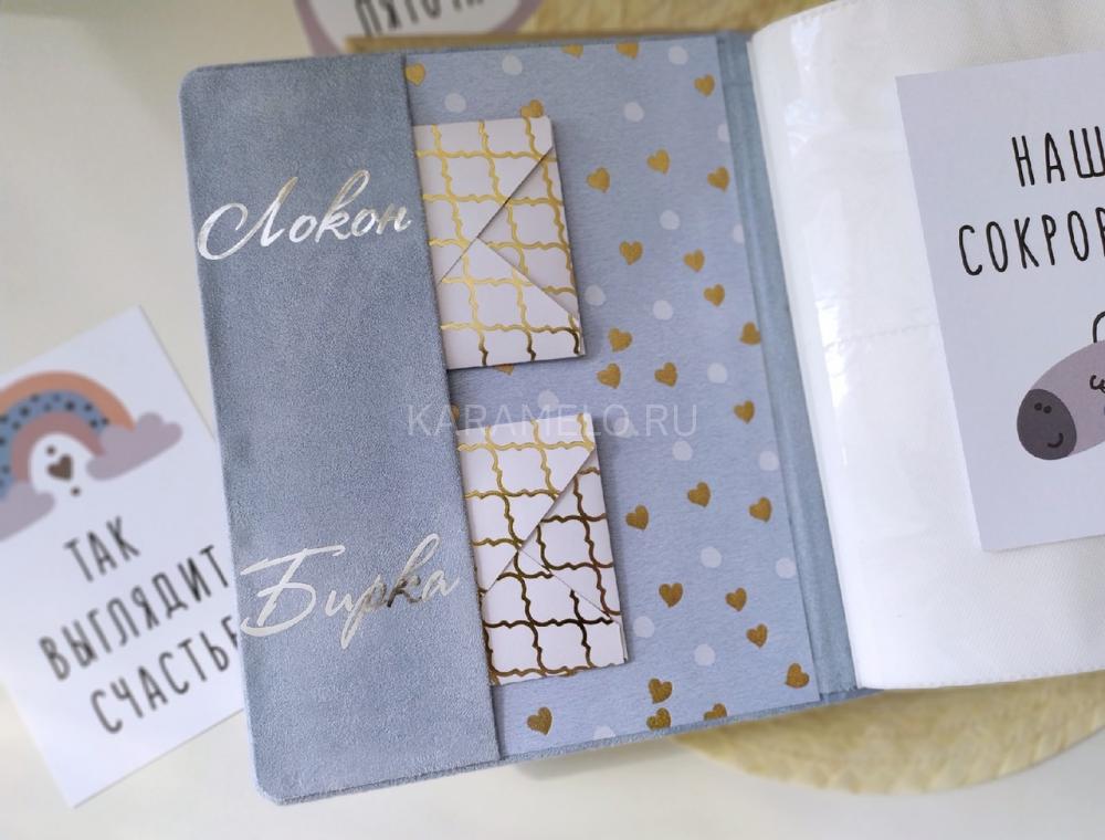 Детский альбом на 300 фотографий для малыша Серёжи. В каждом альбоме есть конвертики для памятных вещиц малыша.